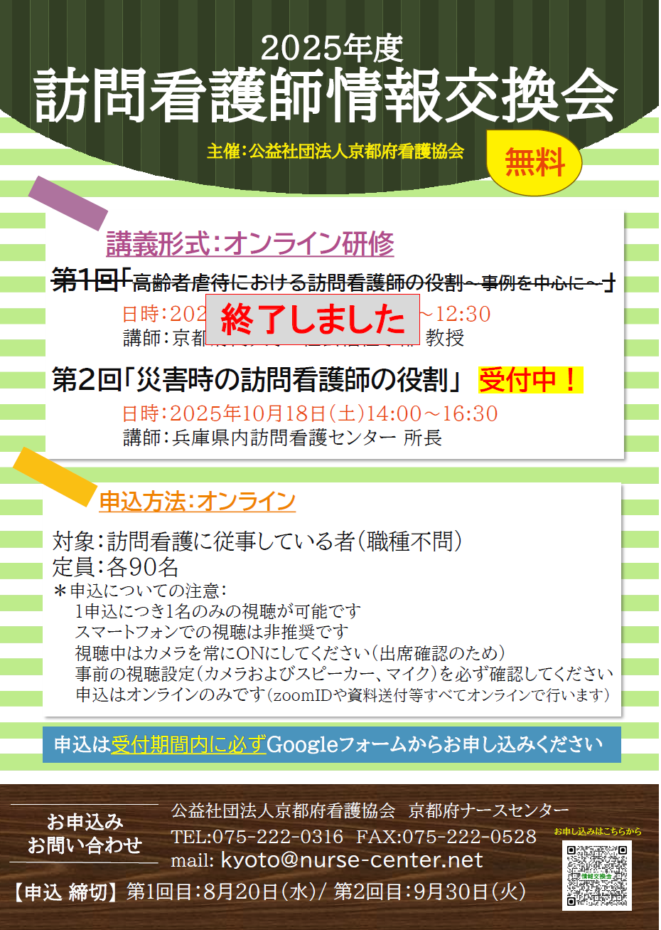 - 2025年度「訪問看護eラーニング」を活用した訪問看護師養成講習会 〔京都府委託事業〕